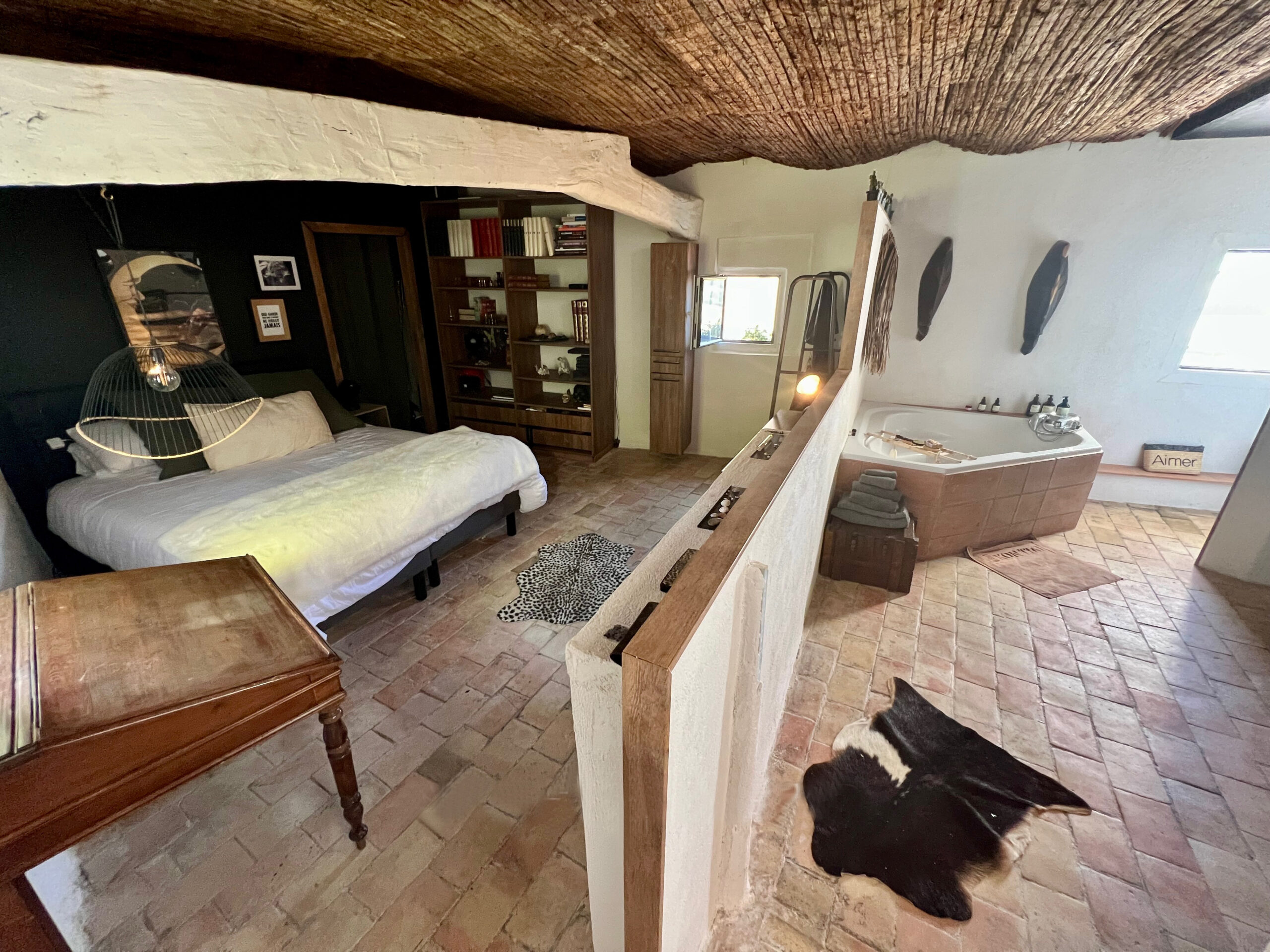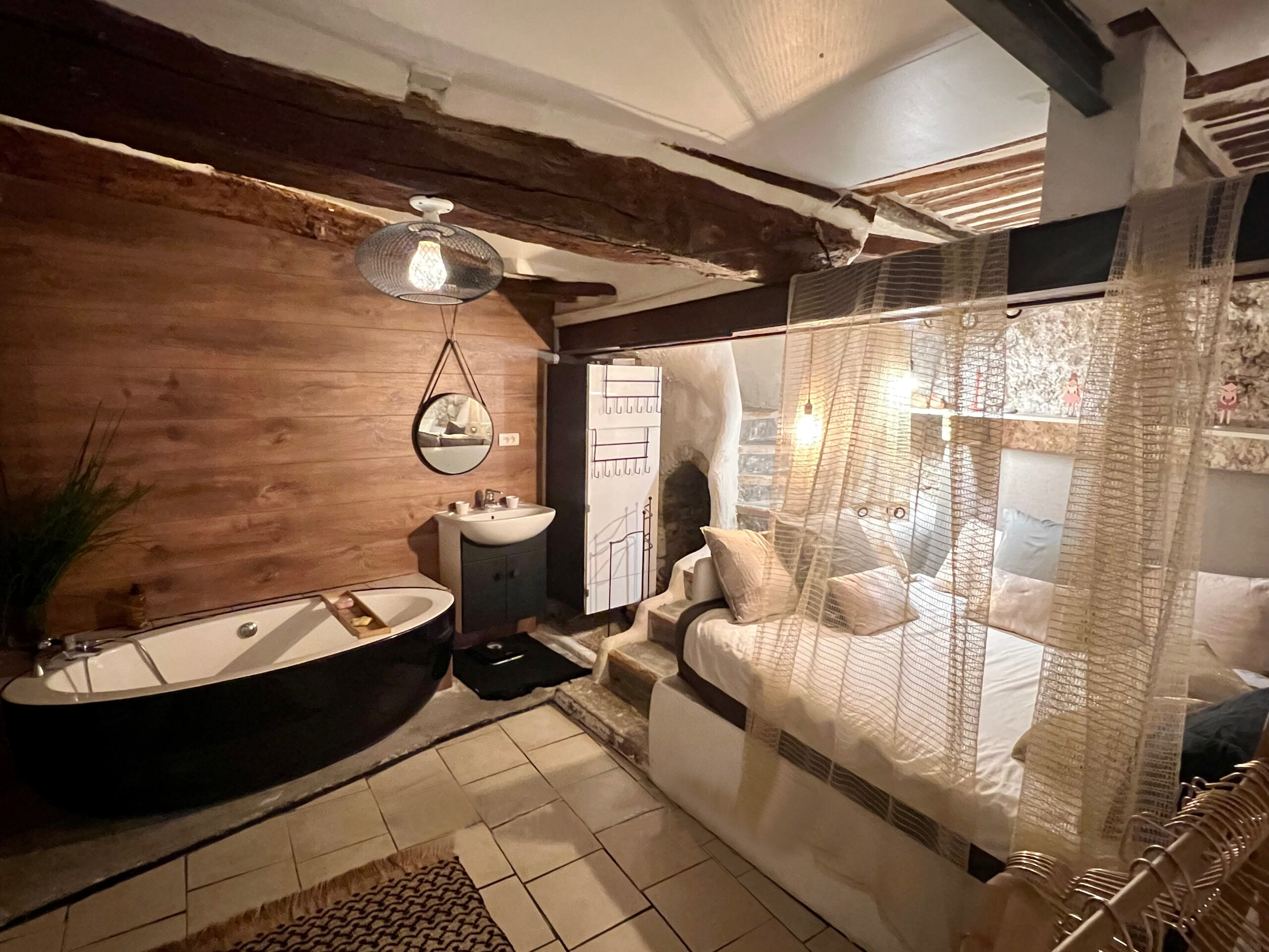 La cave d’origine, autrefois sombre, est devenue une chambre troglodyte au charme unique, avec un accès indépendant.